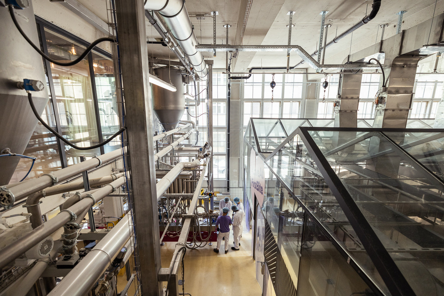 Die Hauptproduktion unseres Fleisches befindet sich in einem Glashaus in Kemptthal, Schweiz - die erste transparente Fleischproduktion, die der Öffentlichkeit zugänglich ist.